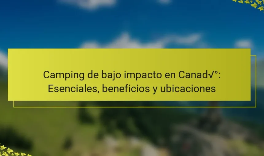 El camping de bajo impacto en Canadá ofrece una forma sostenible de disfrutar del aire libre mientras se minimiza el impacto ambiental. Los principios clave incluyen la ética de No Dejar Rastro, el equipo esencial para prácticas ecológicas y lugares de camping notables en todo el país. Este enfoque mejora el bienestar personal al reducir […]