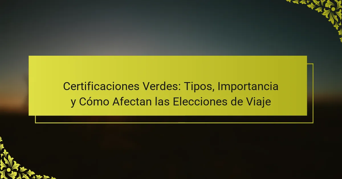 Las certificaciones verdes son cruciales para las decisiones de viaje sostenibles, ya que significan prácticas ecológicas. Guían a los viajeros hacia opciones responsables, asegurando un menor impacto ambiental. Certificaciones como LEED y Green Key promueven la eficiencia energética y la reducción de residuos, mejorando las experiencias de viaje en general. Los viajeros priorizan cada vez más estas certificaciones, reflejando una tendencia creciente hacia la sostenibilidad en el turismo.