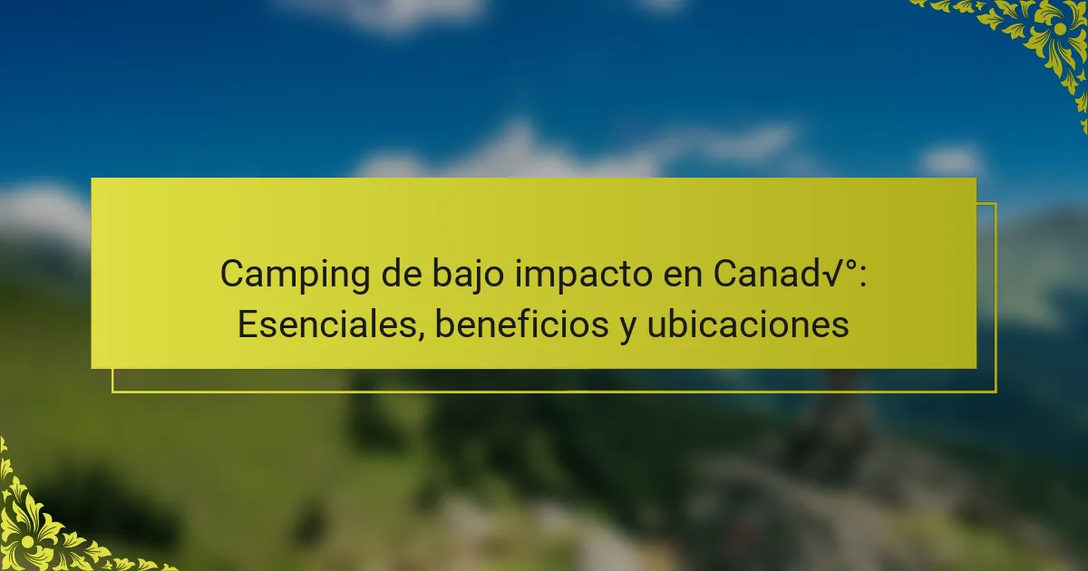 El camping de bajo impacto en Canadá ofrece una forma sostenible de disfrutar del aire libre mientras se minimiza el impacto ambiental. Los principios clave incluyen la ética de No Dejar Rastro, el equipo esencial para prácticas ecológicas y lugares de camping notables en todo el país. Este enfoque mejora el bienestar personal al reducir el estrés y fomentar una conexión con la naturaleza. Sin embargo, los campistas pueden enfrentar desafíos como el acceso limitado a sitios remotos y la necesidad de equipo adecuado.