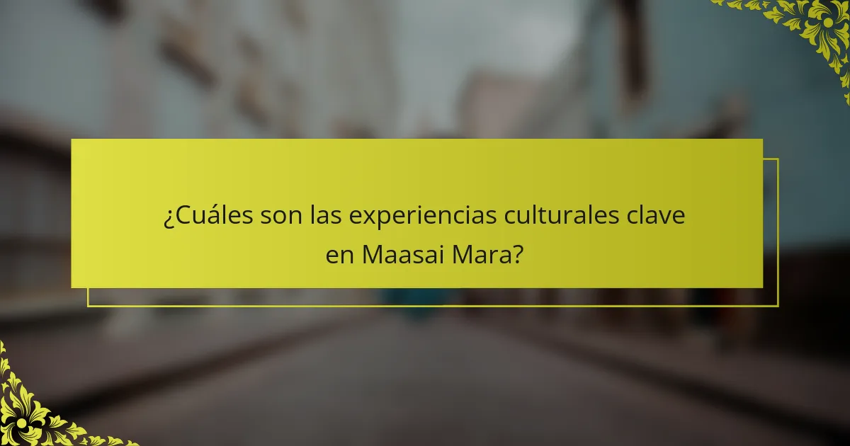 ¿Cuáles son las experiencias culturales clave en Maasai Mara?